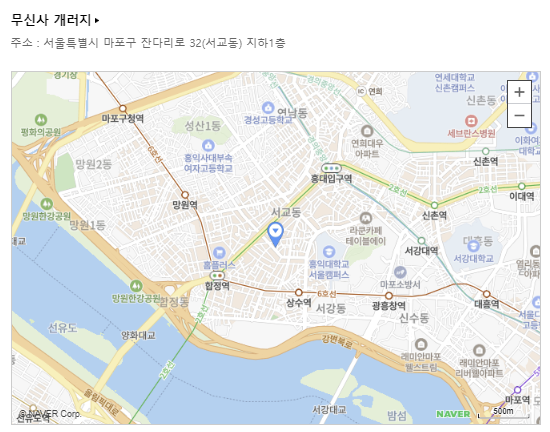 * 주소 : 서울특별시 마포구 어울마당로 65(서교동) 지하 2층